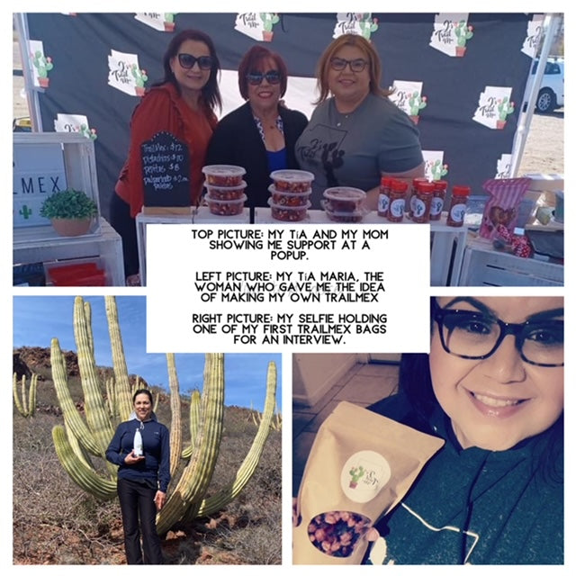 The journey started in March of 2018 when my family was visitng from Guaymas Sonora, Mexico. They had gifted me a bag of some delicious trail mix. I loved it so much that I reached out to the business owner. I let her know that I wanted to invest in her business but she said, "No" and told me I could pay full price. My tia looked at me and said “Hija, tu no eres pendeja. Abre la bolsa y ve que tiene, y haz tu propio mix.’ In English she basically said, "You’re not a dumb ass, open the bag look at whats’s inside and make your own mix." Days later with $25 dollars that I had left over from my paycheck, I went and bought dried fruit, roasted nuts and whatever else I needed. This is how J’s TrailMex was created.