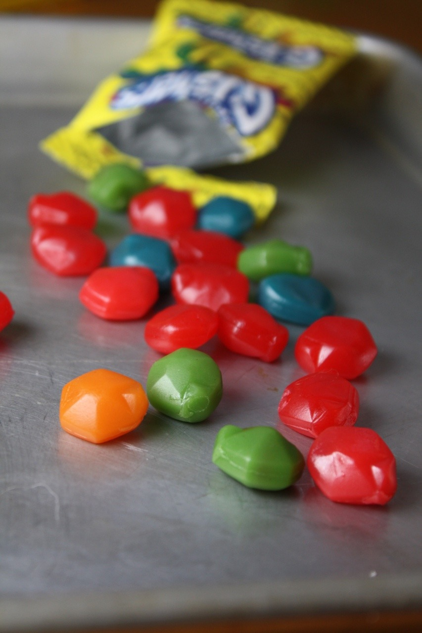 Gusher candy are covered in a light coat of Js Chamoy and Chile Mix.